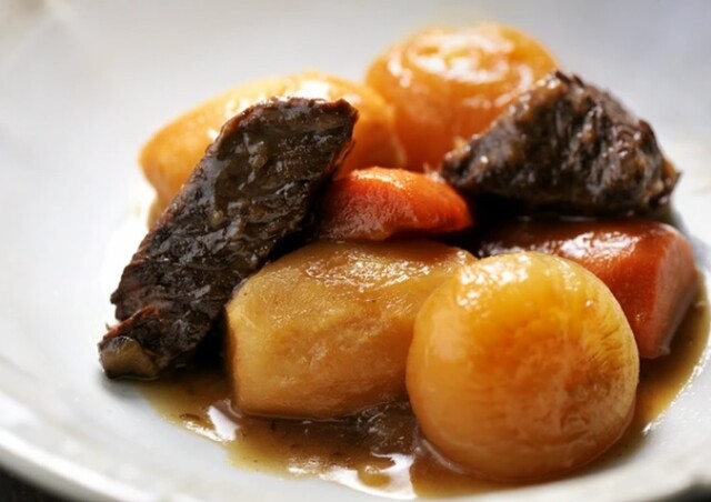 看板メニューの「肉じゃが」は、まるでシチューのような濃厚さとごろごろの食感が堪らない焼酎や日本酒のつまみにぴったりな逸品。「牛タンしゃぶしゃぶ」といった鍋料理も豊富に取り揃えており、コース料理も充実しているので、近くに訪れた際はぜひ利用してほしい。