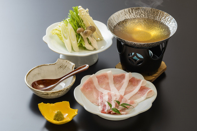 さまざまな郷土料理の中でもおすすめなのが、「極上かごしま六白黒豚のしゃぶ鍋」だ。日本一の黒豚生産県・鹿児島で育てられた極上黒豚は、口の中でとろける甘みと旨味が特徴。