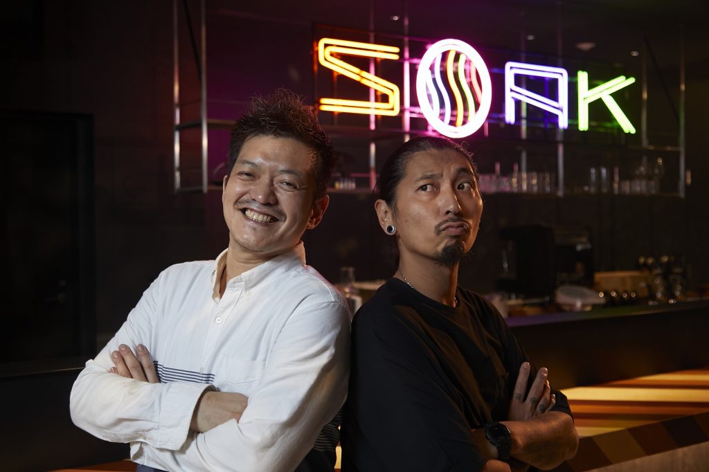 「BUILD NEO TOKYO」がテーマの、エンターテイメントレストラン&バー「SOAK」。劇場型パフォーマンスによって多くの注目を集め続ける、西麻布の革新的レストラン「西麻布81」の永島健志シェフと、「JAPANESE CUSINE TOP 5 CHEF IN HONG KONG」にも選出された香港を代表する日本人シェフ、長屋英章シェフがタッグを組む。