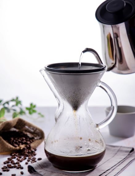 コーン型ステンレスフィルターを使用することで、スッキリとした香り豊かな味わいを実現。オリジナルブレンドや、シングルオリジン、ディカフェコーヒーのコーヒー豆も豊富に用意している。
