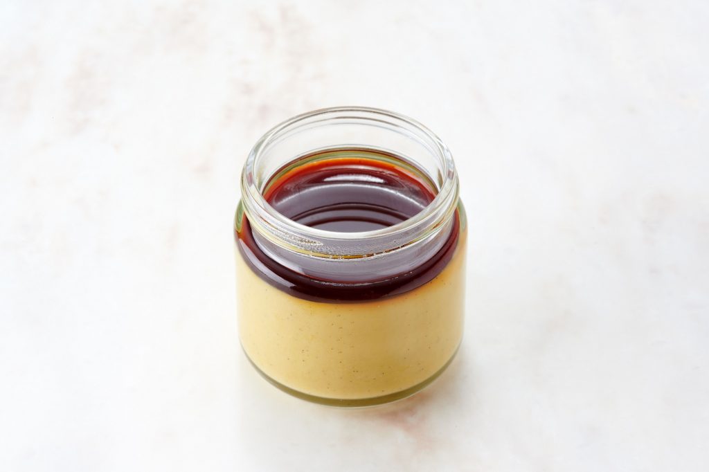 吉野産本葛、豆乳、マダガスカル産バニラなどで作った奥深いプリン。卵・乳製品・白砂糖一切不使用という、無添加・100%植物由来ながら、なめらかな舌触りとビターなカラメルソースが印象的。