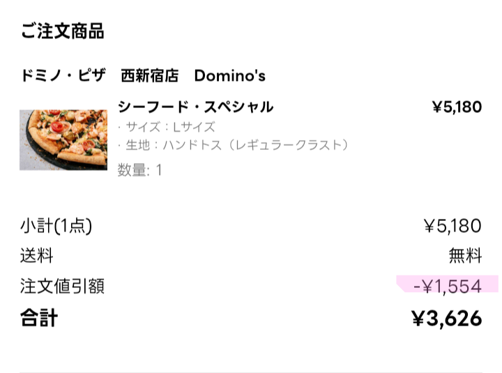 選択したクーポン(ドミノ・ピザ 30%割引)が適用されました。